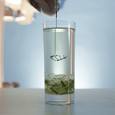 PRINT A DRINK ist das weltweit erste 3D - Druckverfahren für Getränke und andere flüssige Lebensmittel. Dabei werden feine Öltropfen mit einem Roboterarm präzise in einen „Cocktail“ injiziert. Das Ergebnis sind faszinierende trinkbare Lebensmittelkreationen in denen verschiedene dreidimensionale Formen wie von Zauberhand schweben. Der Druckprozess ist ein perfektes Beispiel für eine Mensch-Maschine-Interaktion. Der Roboter bedruckt die Cocktails während der Barkeeper den nächsten Cocktail nach Wunsch des Gastes vorbereitet. High-End Technologie verbindet sich mit Molekulargastronomie zu einem absoluten Eyecatcher.