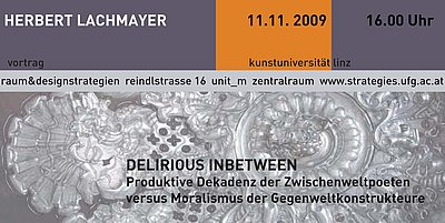 O.Univ.-Prof. Dr. Herbert Lachmayer hält zum diesjährigen Jahresthema - ANTI – im zentralen Fach raum&designstrategien 09/10 an der Studienrichtung raum&designstrategien einen Vortrag.