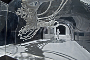 Der Betrachter beschreitet vom Eingang her den Zyklus des Verfallens. Die Rauminstallation beginnt in einer geschützten Nische des Raumes, wo ein Körper in embrionaler Stellung erwacht und über verschiedene ästhetische Bewegungsmuster, die ihm zeitweise Halt geben, letztlich unaufhaltsam in den Tod stürzt.