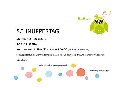 Anlässlich des Tages der offenen Tür der Kunstuniversität heißen wir euch in der KuKi Kiste herzlich willkommen!
