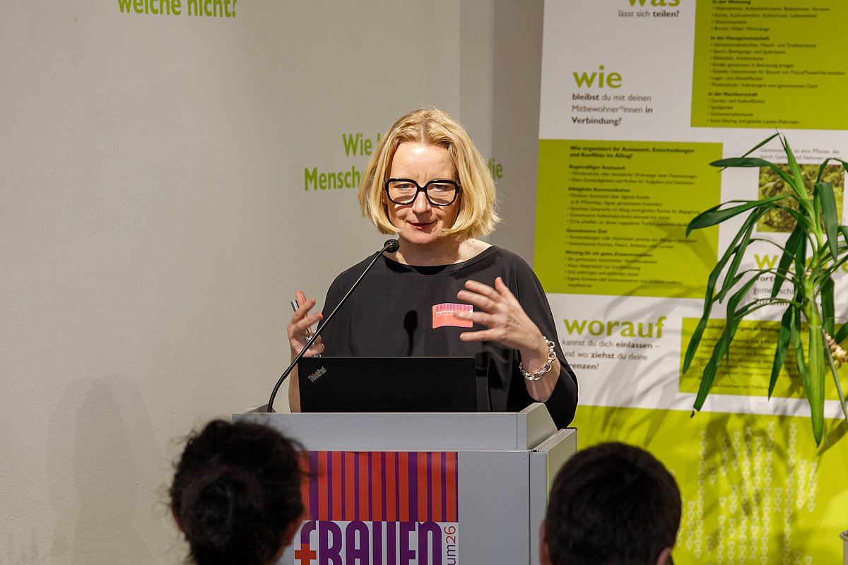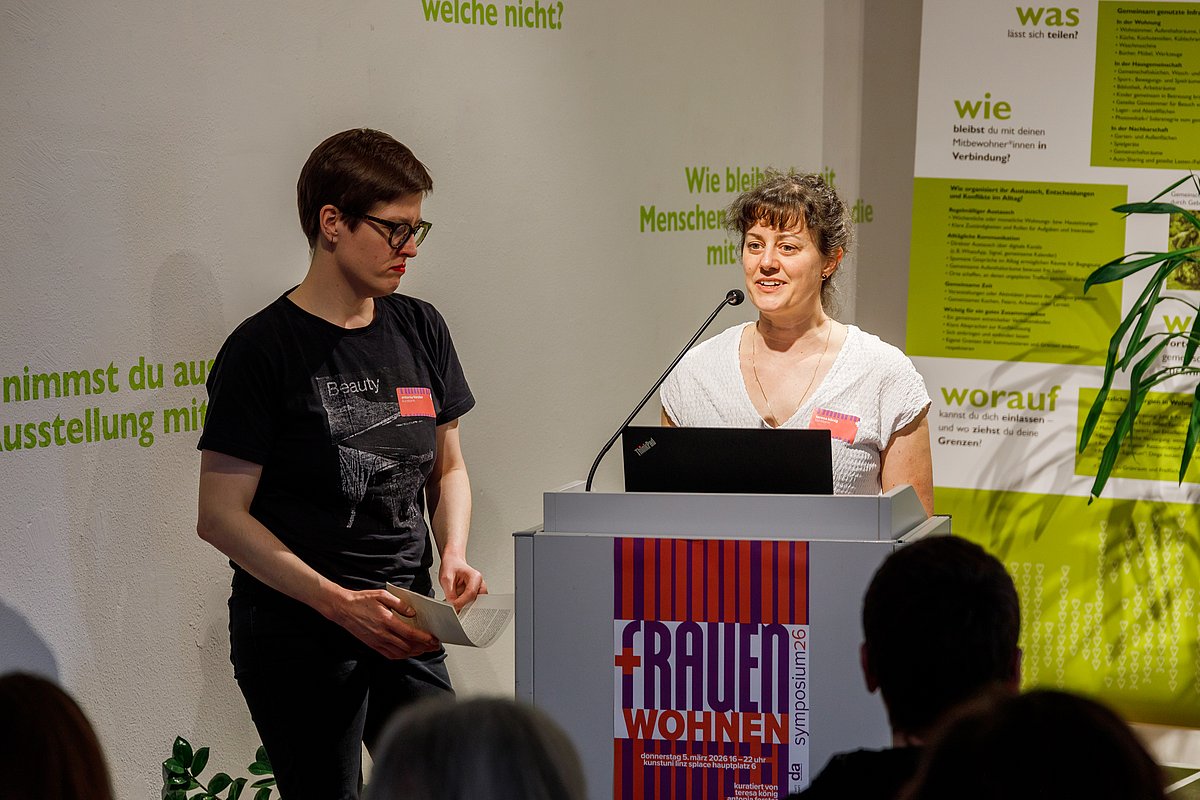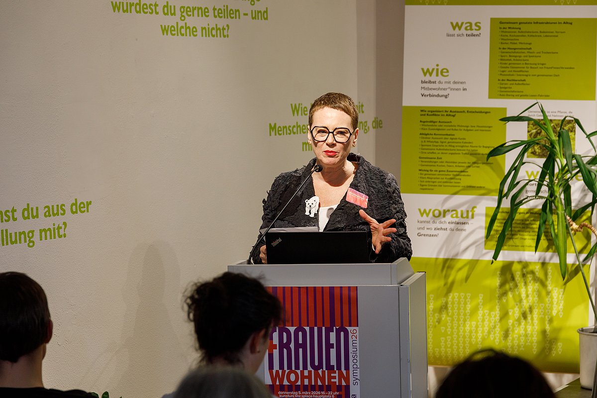 Das Symposium Frauen+Wohnen beleuchtete das Thema Wohnen – konkreter Wohnen von Frauen, Wohnen für Frauen. Wohnpolitik und Wohnmodelle beeinflussen unser tägliches Leben. Historisch wurden Frauen oft von Entscheidungsprozessen in der Architektur und Stadtplanung ausgeschlossen. In Folge wurden ihre Bedürfnisse und Perspektiven nicht ausreichend berücksichtigt.